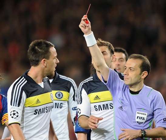 或许,伟大队长都会留有遗憾的一面——齐达内曾在德国世界杯的决赛中头顶马特拉齐,结果齐祖被罚下后法国队在点球大战中不敌意大利;贝克汉姆曾在1998年世界杯上报复性踢人犯规,结果他被红牌罚下后险些成为全民公敌;罗马队长托蒂也曾在2004年的欧锦赛上向对手吐口水,事后被追罚停赛的他只能眼睁睁看着球队小组出局。今天特里虽然被红牌罚下,但切尔西总算挺进了决赛,他至少不用为球队出局而内疚,甚至有人促狭的表示,正是特里的下场才成就了切尔西,因为少打1人让蓝军坚定了死守的信念!