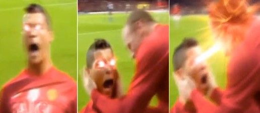 C罗眼中喷射出激光,把鲁尼的脑袋烧焦;米拉大叔在角旗边兴奋的扭动臀部,身前却是一个美艳的女郎;