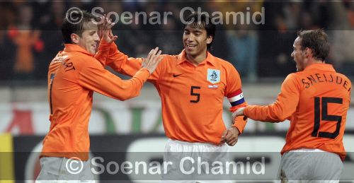 Nederland: Stekelenburg, Jaliens, Mathijsen, Bouma, Van Bronckhorst, Landzaat (46. Sneijder), De Jong (63. Mendes da Silva), Seedorf (78. De Cler), Van der Vaart, Vennegoor of Hesselink (78. Huntelaar), Kuijt (46. Babel).