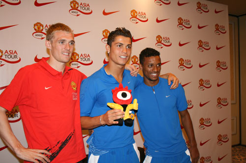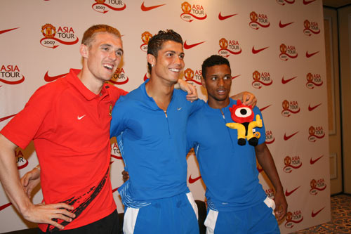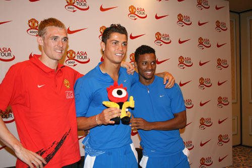 曼联抵达澳门的第二天,葡萄牙球星C罗与两名队友一起接受了新浪等媒体专访,回答了很多球迷们很感兴趣的问题,比如与弗格森的赌约、自己穿7号球衣的“曲折”,对中国球星董方卓的评价以及对未来的希望。