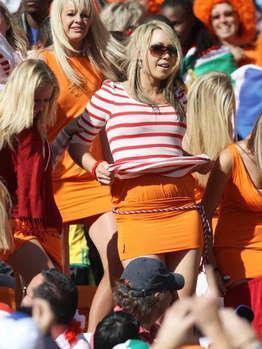 在冬季举办的世界杯是罕见的,但荷兰美女球迷在是看台的火热激情是一道不可抹灭的靓丽风景,但一位美女却有些过于显眼,他竟然在大庭广众之下脱掉了自己原本就超短的裙子,好好的秀了一把身段。