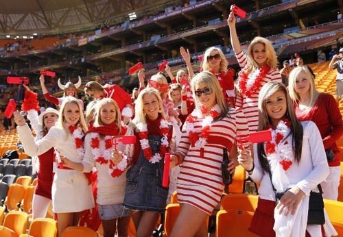 女球迷看台当众脱超短裙 不惧南非寒流